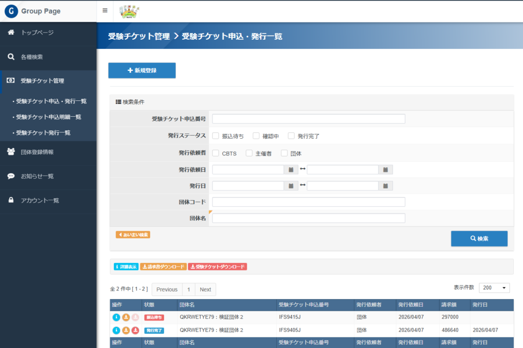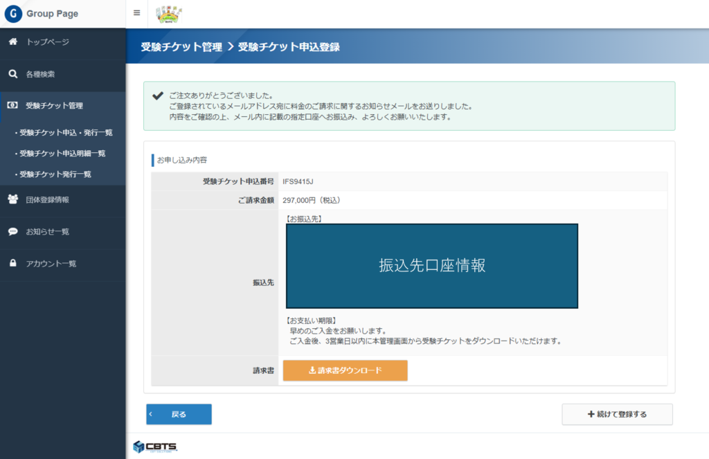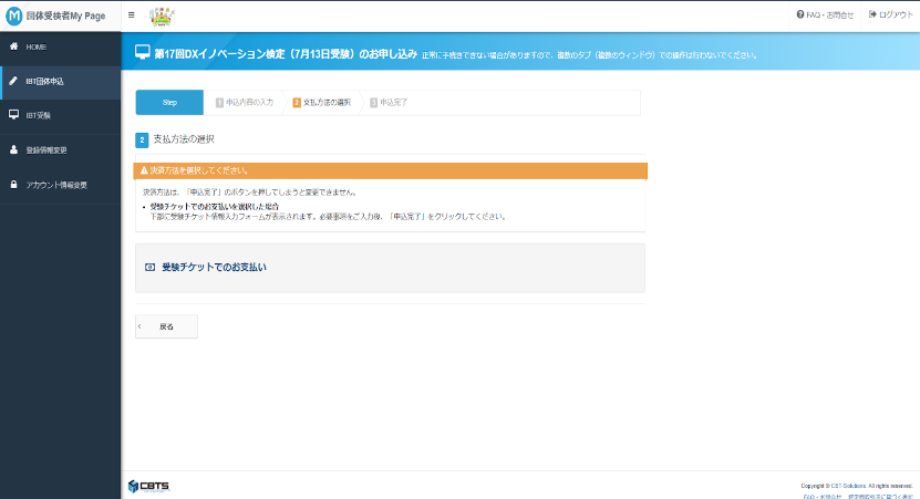 受験者様各位は団体様が発行し有効となった「受験チケット」を使って受験申込をします。