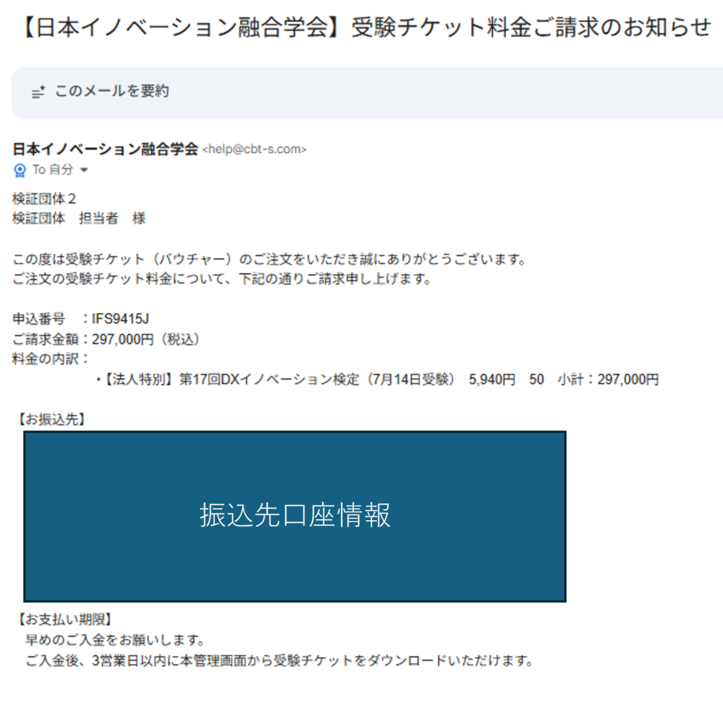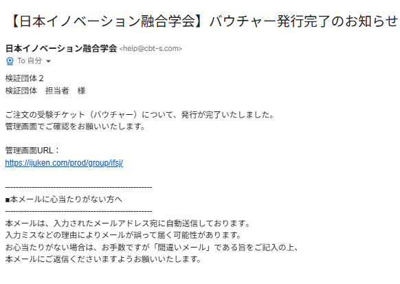 ご入金確認後、バウチャー発行完了のお知らせメールが届きます