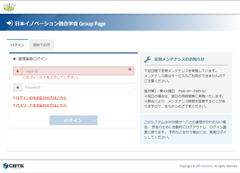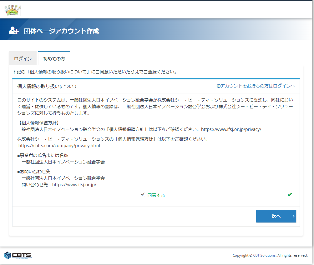 注)すでに団体アカウントを作成済みの場合、団体様のID、パスワードでログインします。初めての方は団体ページアカウントを作成します
