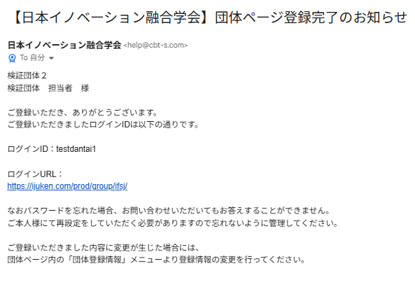 STEP2 登録された団体担当者様のメールアドレスに「ログインID、ログインURL」が送付されます。